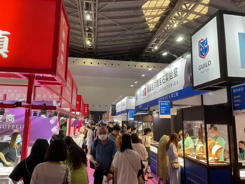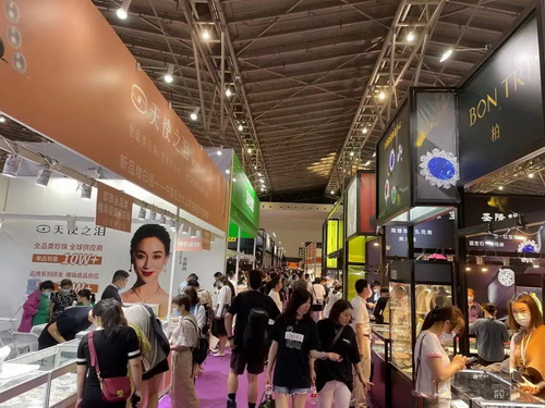2021上海国际珠宝首饰展览会今日进入第三天,适逢周末加上凉爽的出行天气,展馆内人气迎来高峰。作为一场专业的珠宝盛宴,当然少不了买买买,部分展位展区摩肩接踵,全国各地的珠宝爱好者沉浸在这片珠宝的海洋里,精挑细选,其乐融融!