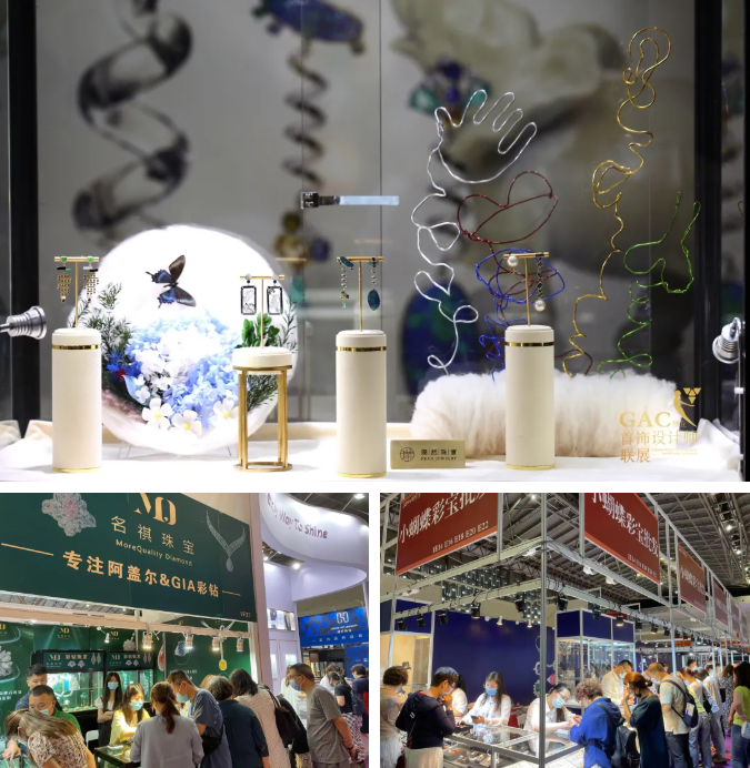 GAC设计师首饰设计师联展设计的精美绝伦,“揭阳展团”、“平洲玉器展团”、“四会玉博城展团”翡翠的琳琅满目,珍珠展区的价廉物美以及各大珠宝专业市场展团的各具特色都让人流连忘返,目之所及皆是美好!